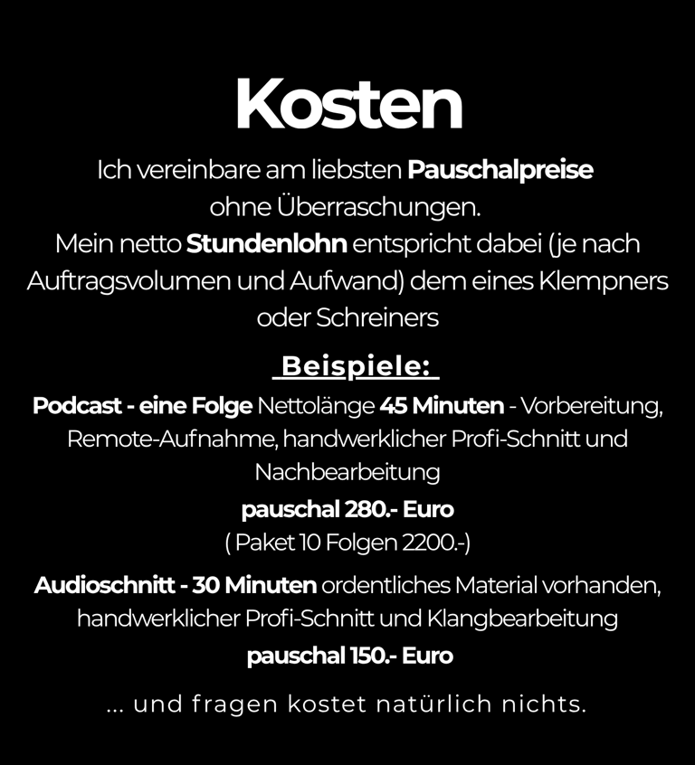 Prinzipiell können wir gemeinsam jede Art von Audioproduktion umsetzen: